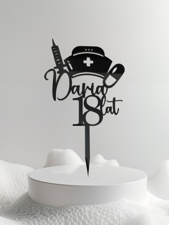 Topper na tort dekoracja urodziny pielęgniarka lekarz pleksa czarna